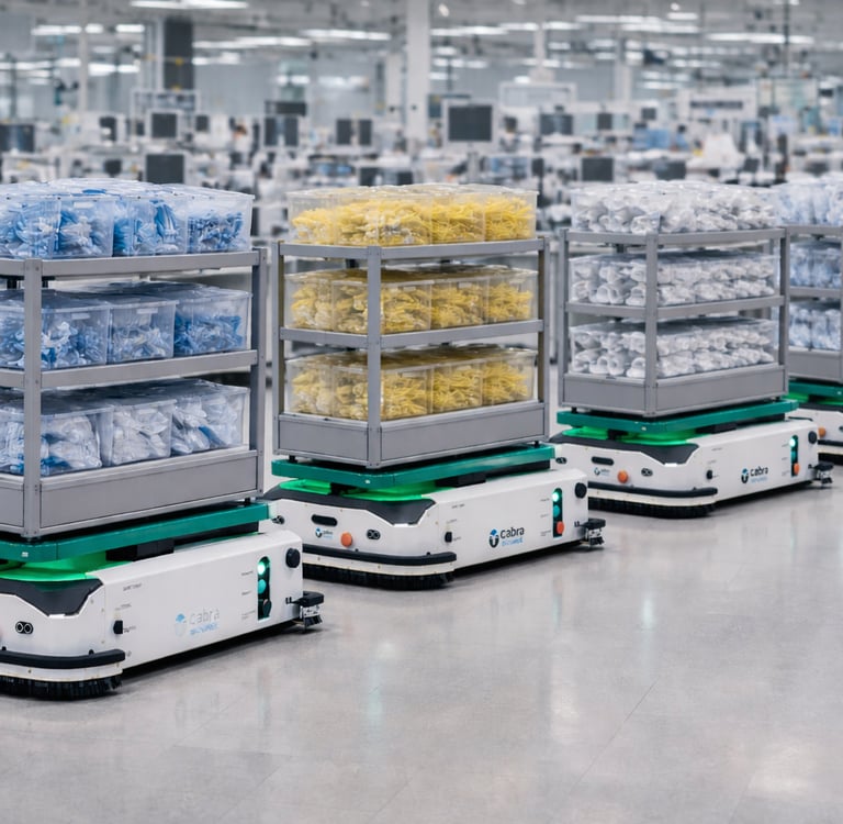 CabraMove provides autonomous mobile robot solutions for material movement across manufacturing, warehousing, logistics, and internal delivery environments.