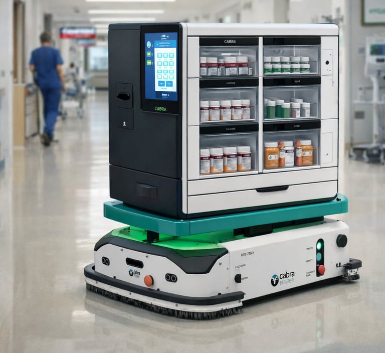 CabraMove AMRs support internal delivery workflows designed to operate safely around people in mixed-traffic environments. These systems can help automate repeatable routes and reduce unnecessary travel time